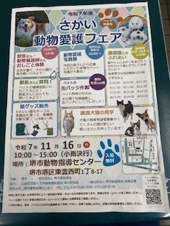 譲渡犬猫の見学や写真展 ペット同伴者の方のみの缶バッチプレゼントもあります。(無料先着100組)小雨決行です。詳細は市のホームページでご確認下さい。駐車場がありませんので近隣の有料駐車場をご利用ください。よろしくお願いいたします。